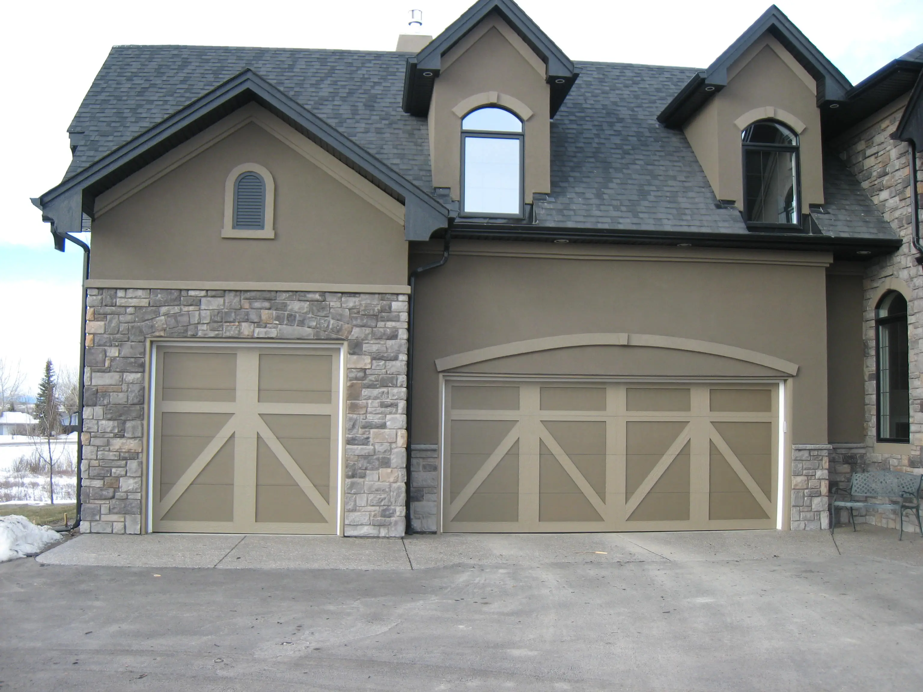 Artisan Collection garage doors offer a distictive one of a kind look and the architectural detail that you just can’t achieve with other products. We begin with insulated (R16) flush panel steel door sections and apply Smart Board composite overlays in your choice of 4 patterns. The result is a Carriage style look with better insulation and much lower maintenance than a true wood door.